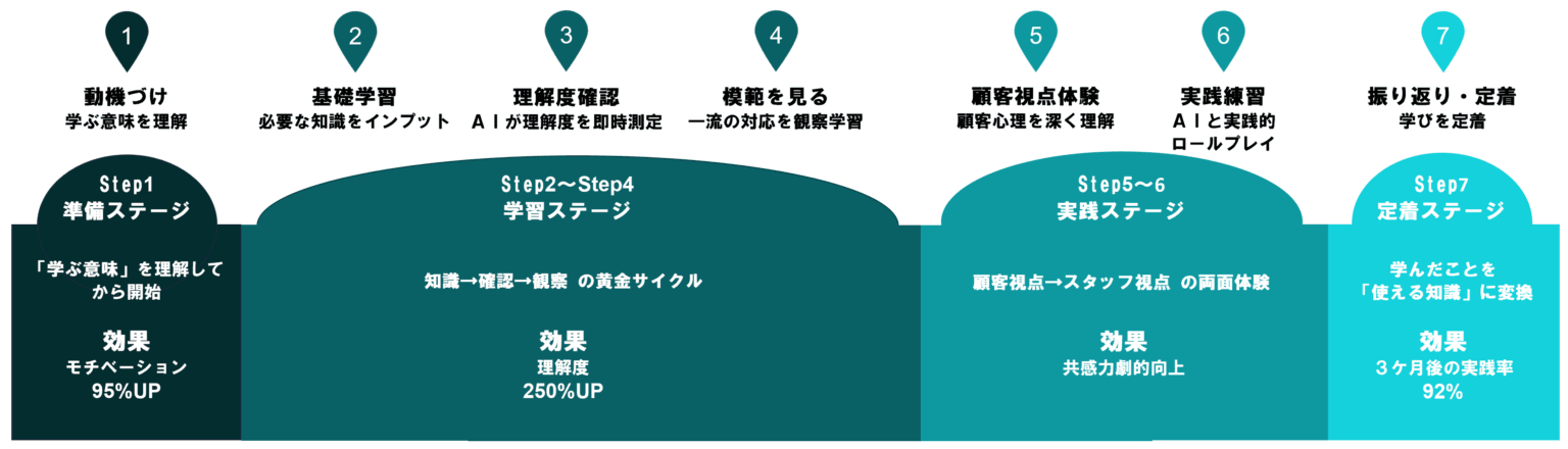 7つのステップで基礎と応用を学んだ後は、AI接客道場へ。